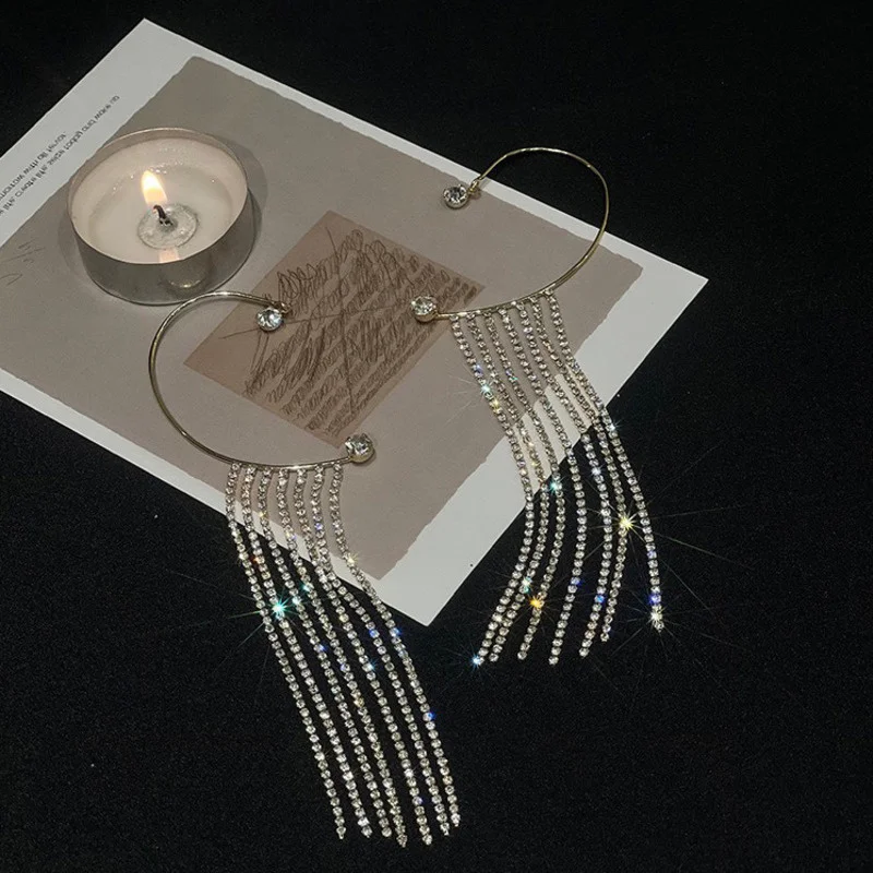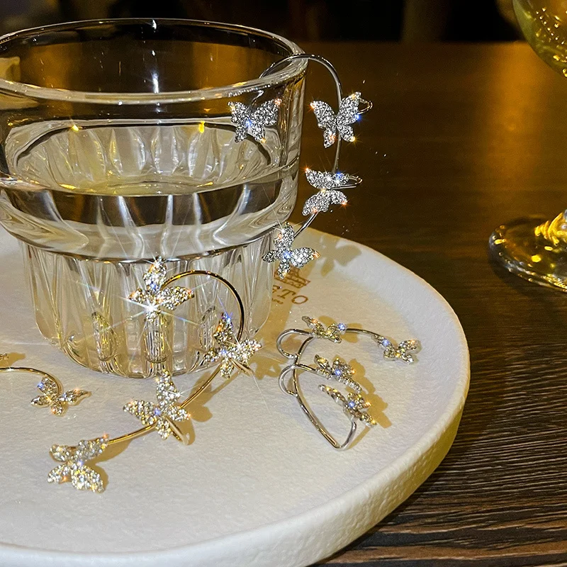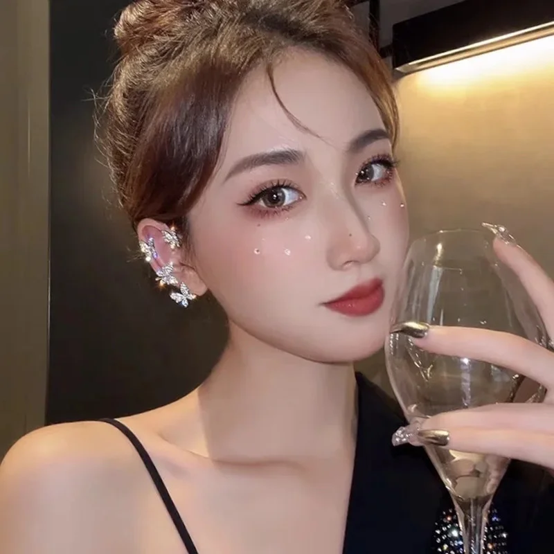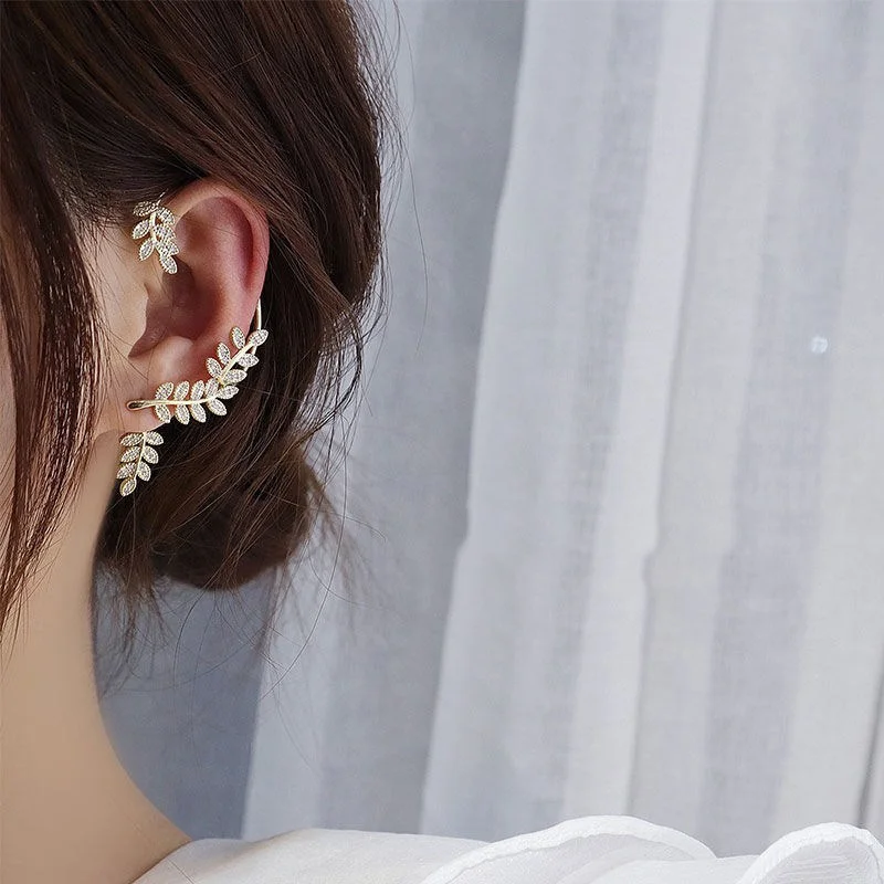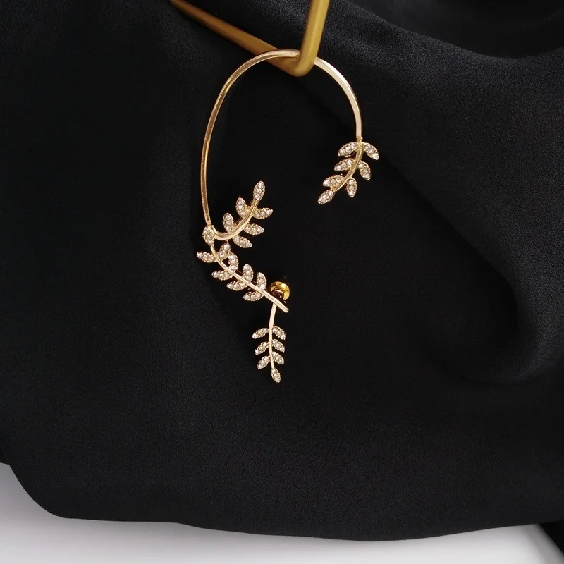 2022 Trendy Metal Crystal Leaf Ear Clips Without Piercing Earrings Clips For Women Fashion Ear Cuff Wedding Jewelry Brincos Gift