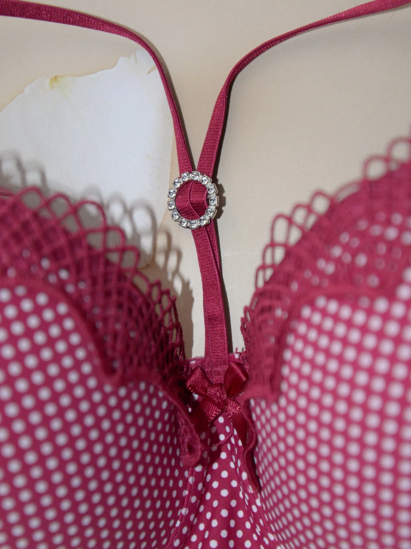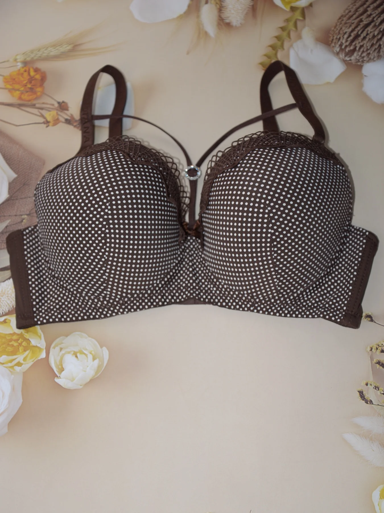 Diana Rose Sexy gathered support with underwire women's underwear polka dot print thin mold cup D cup bra